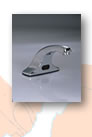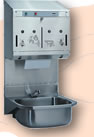 of the sensor, water or soap flow is activated. A metered dose of soap is