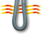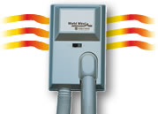 plastic with flexible hose permanently attached to direct air flow. Unit